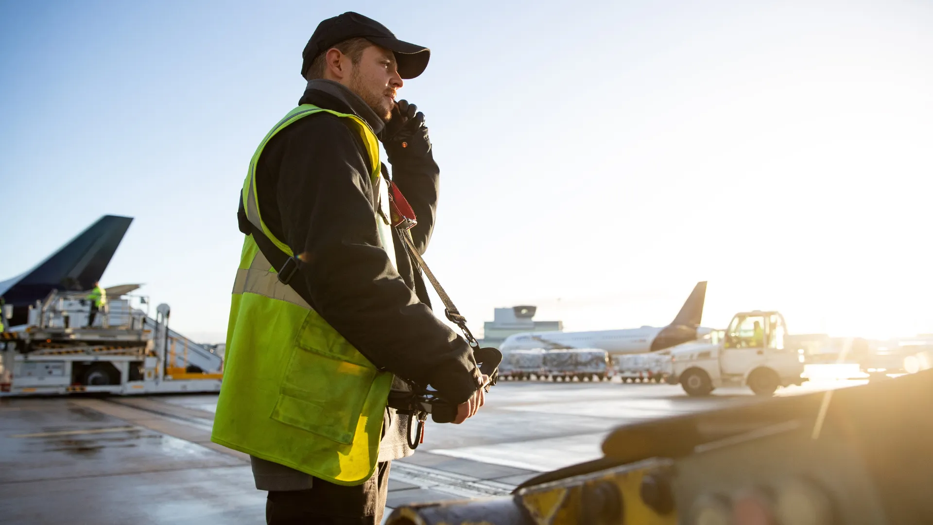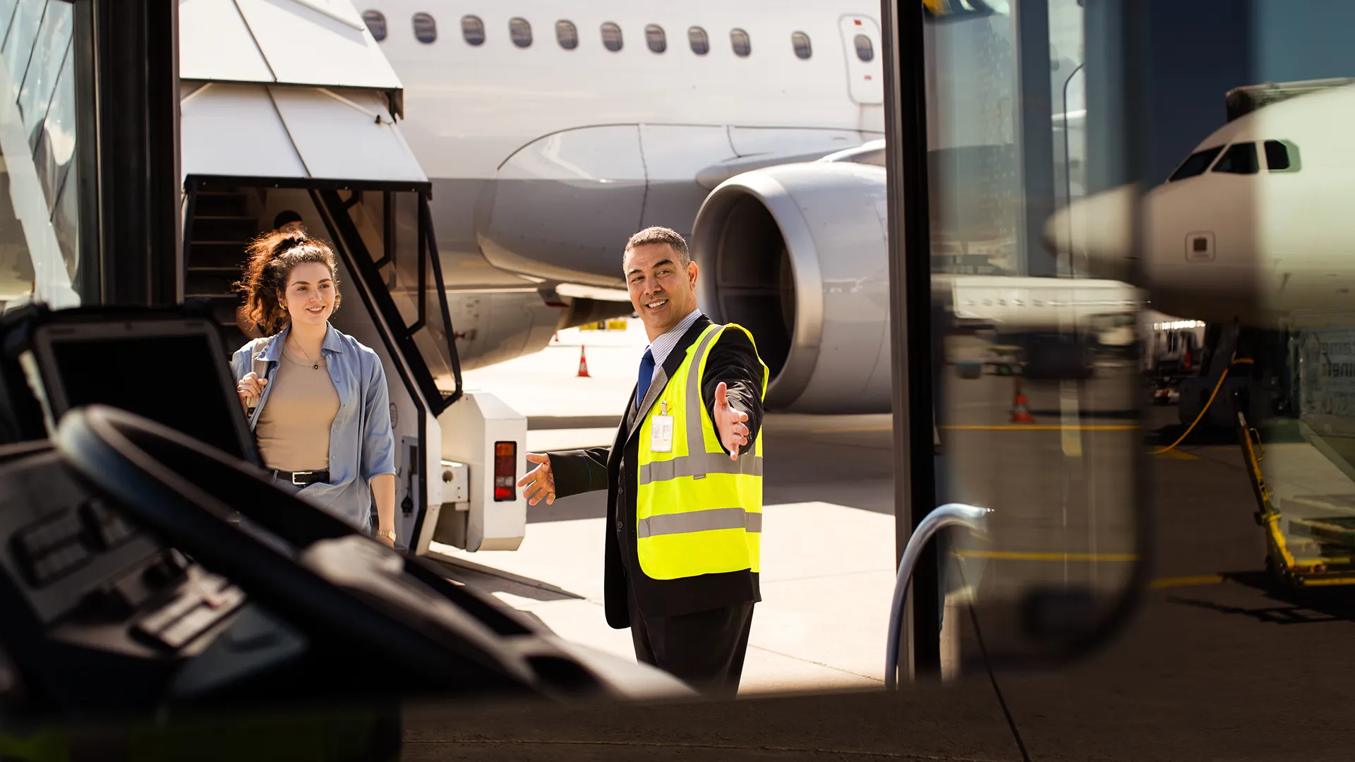 trockenen Fußweg vom Gebäude direkt ins Flugzeug. Jeden Tag sind Sie ein Teil des Vorfeldgeschehens.